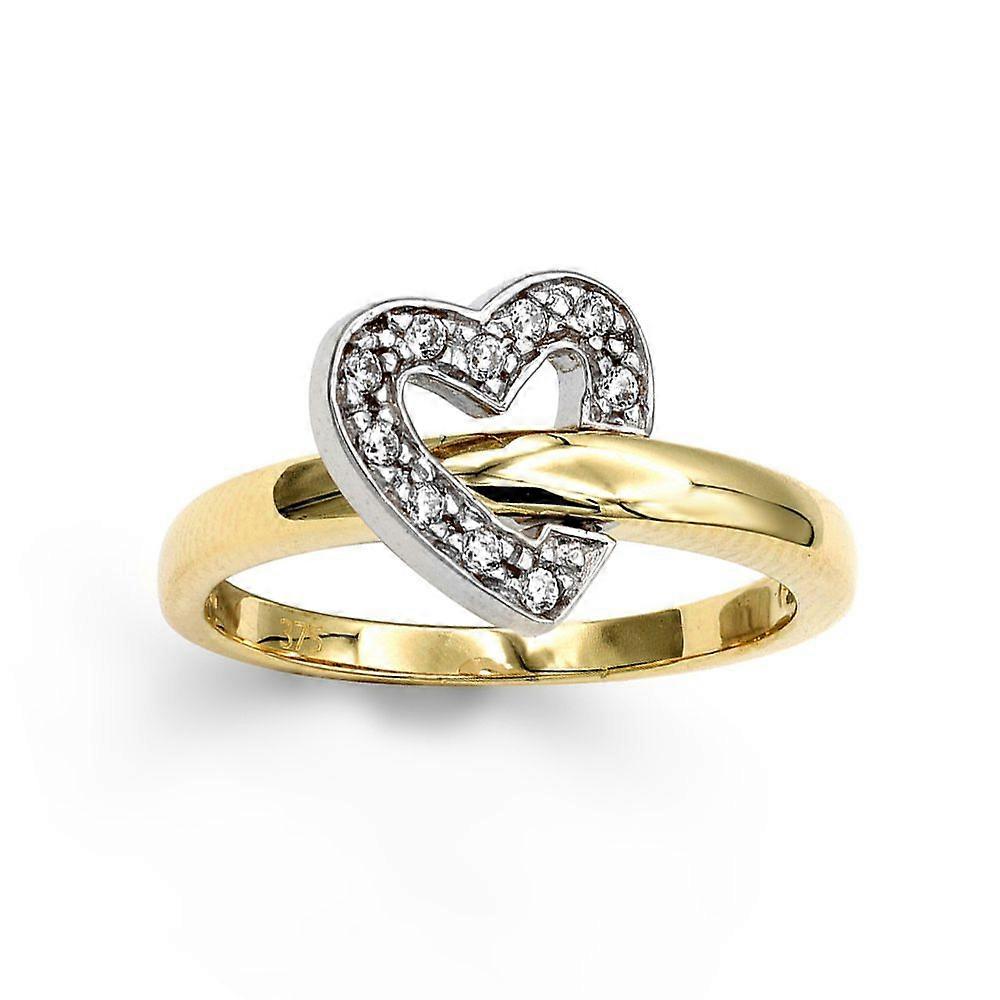 Jewelco London 9ct Yellow and White Gold White Round Brilliant Cubic Zirconia Flip-Over Heart Wedding Ring