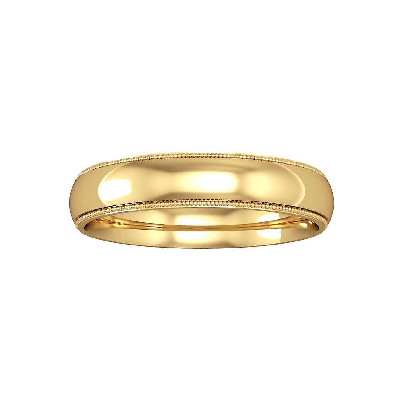 Jewelco London 9ct Yellow Gold - 4mm Essential Court-Shaped Mill Grain Edge Band Commitment / Wedding Ring