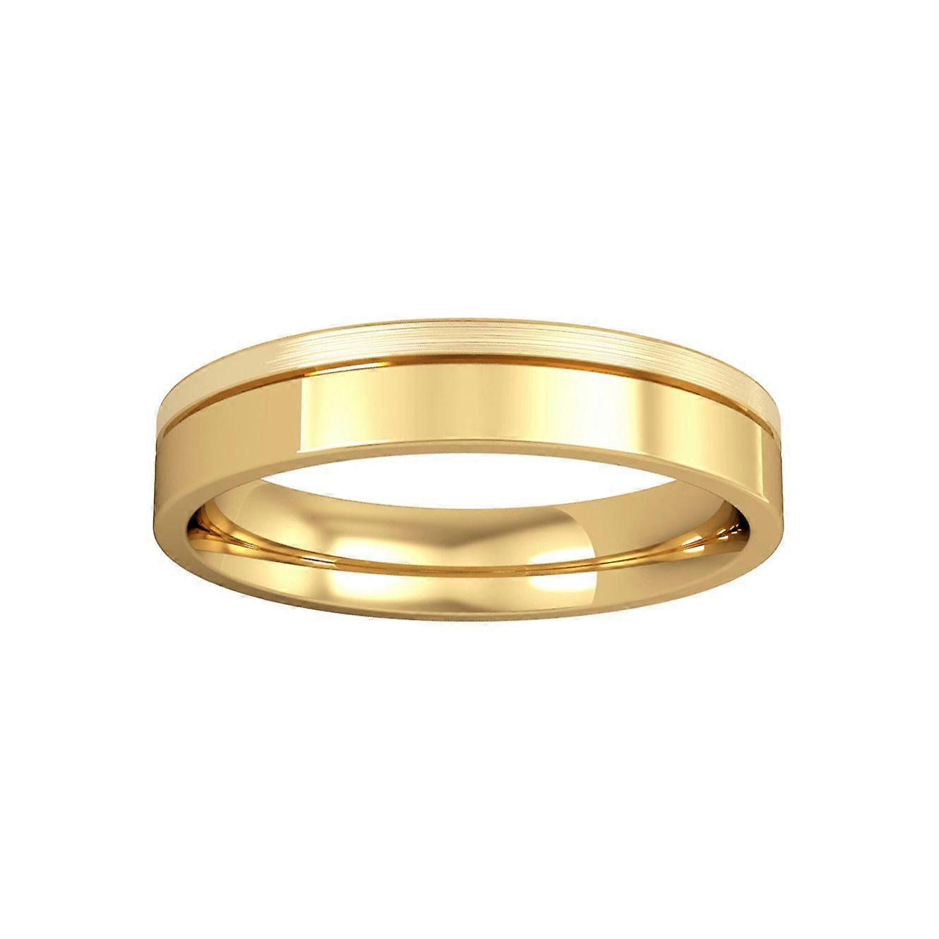 Jewelco London 9ct Yellow Gold - 4mm Flat-Court with Fine Groove Wedding Ring