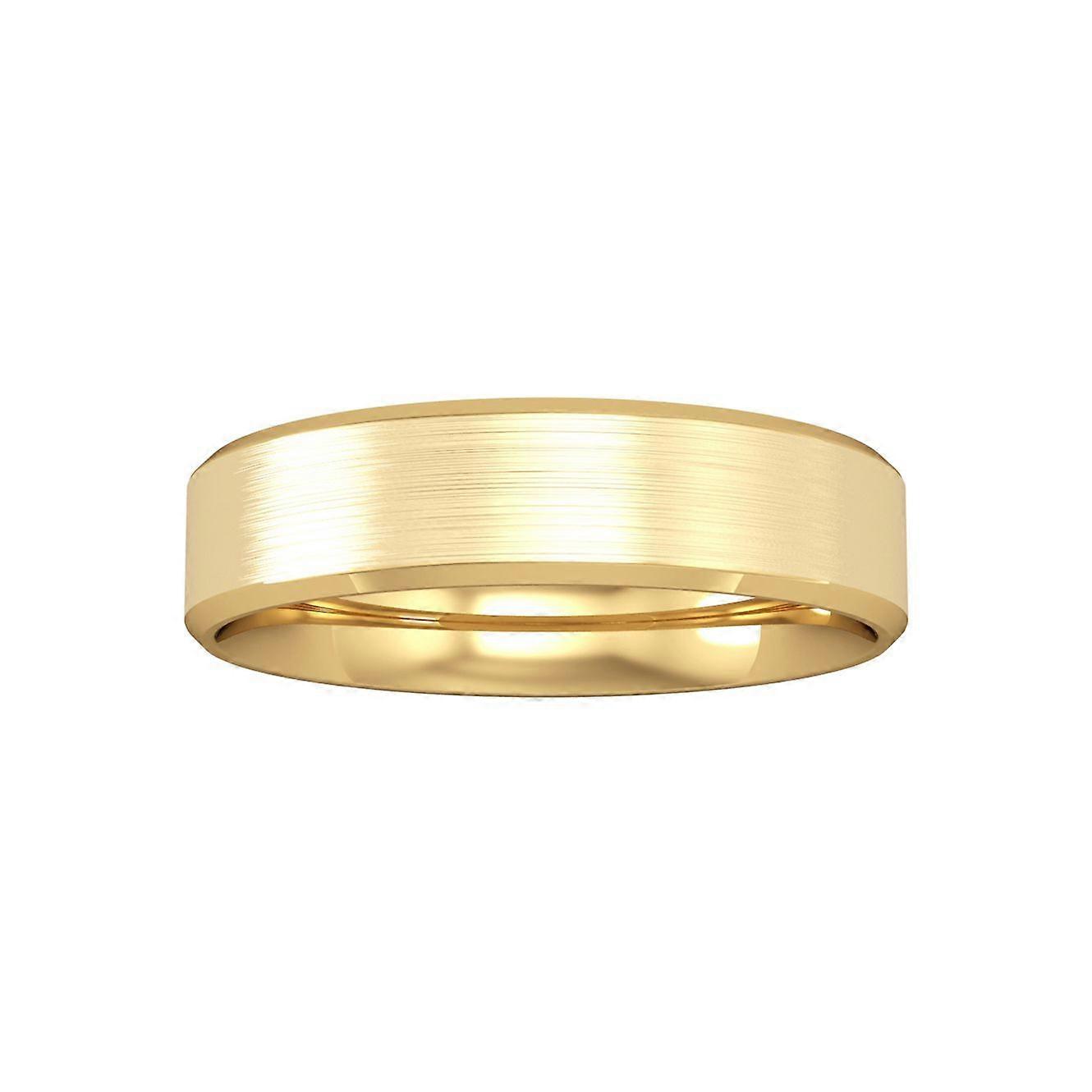 Jewelco London 9ct Yellow Gold - 5mm Flat-Court Satin Polished Wedding Ring