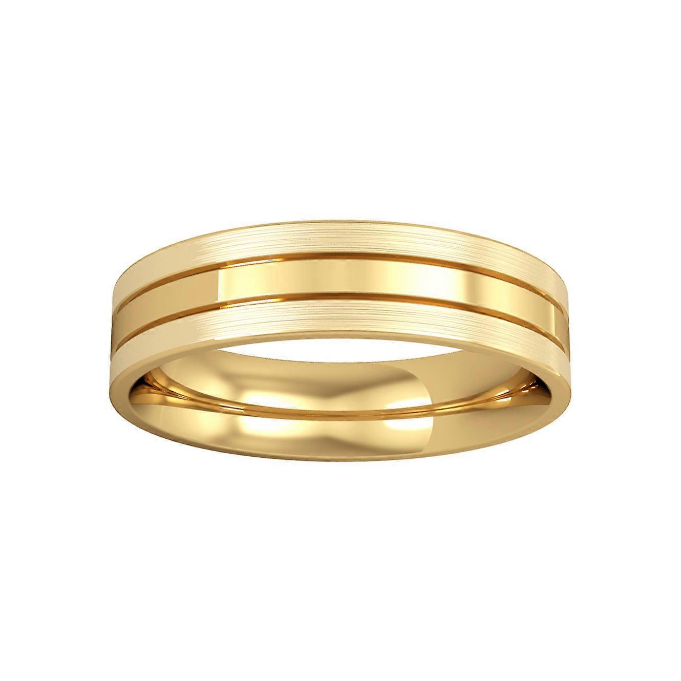Jewelco London 9ct Yellow Gold - 5mm Flat-Court Striped with Satin Wedding Ring
