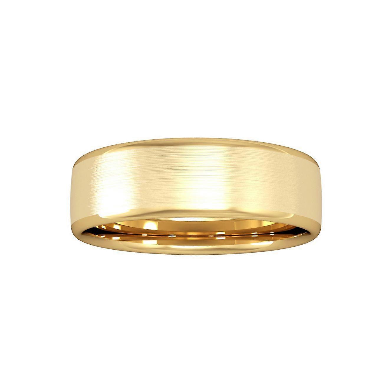Jewelco London 9ct Yellow Gold 6mm Bombe Court Satin-Brushed Wedding Ring