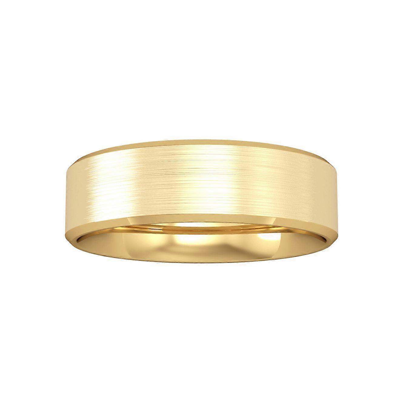 Jewelco London 9ct Yellow Gold - 6mm Flat-Court Satin Polished Wedding Ring