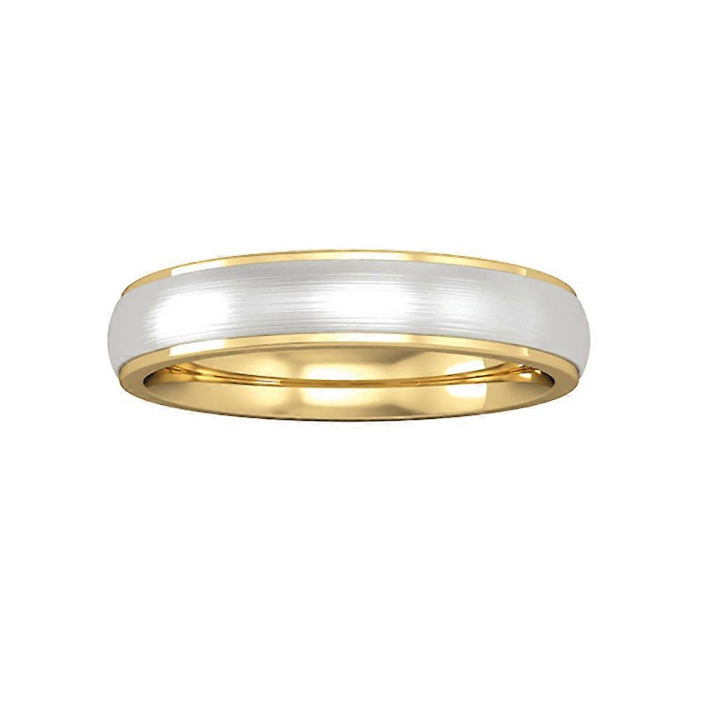 Jewelco London 9ct Yellow Gold Court Satin Brushed Step Band Wedding Ring 4mm