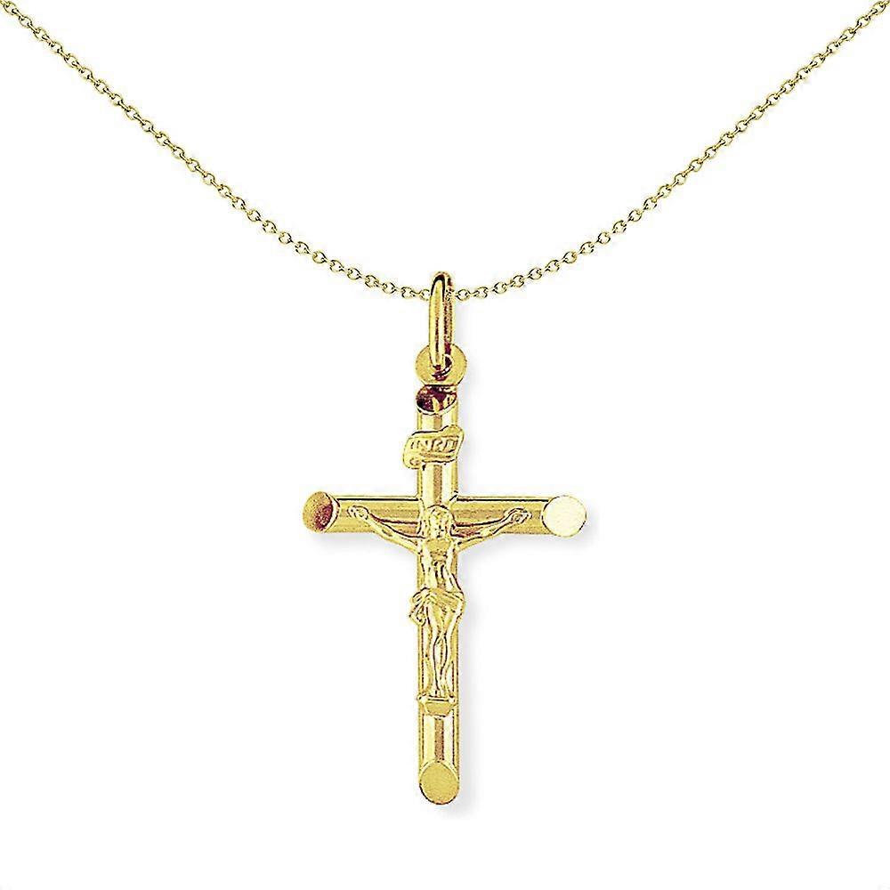 Jewelco London 9ct Yellow Gold Crucifix INRI Inscribed Jesus Cross Charm Pendant - 22x35mm