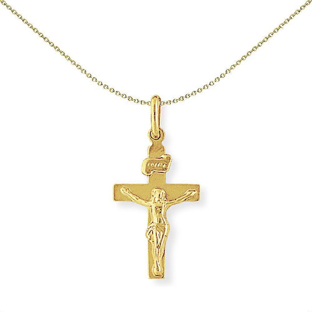 Jewelco London 9ct Yellow Gold Crucifix INRI Jesus Cross Charm Pendant - 13x28mm