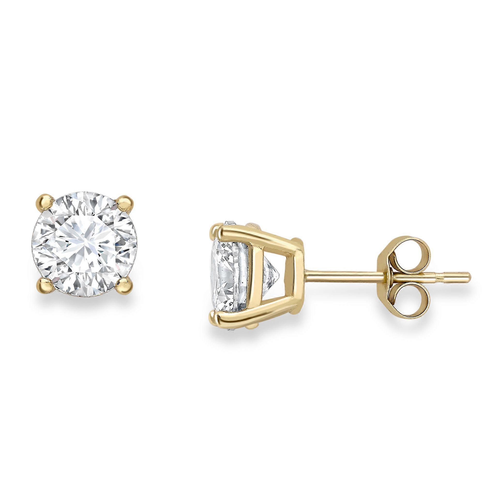 Jewelco London 9ct Yellow Gold Cubic Zirconia Simple 4-Claw Solitaire Stud Earrings 5mm