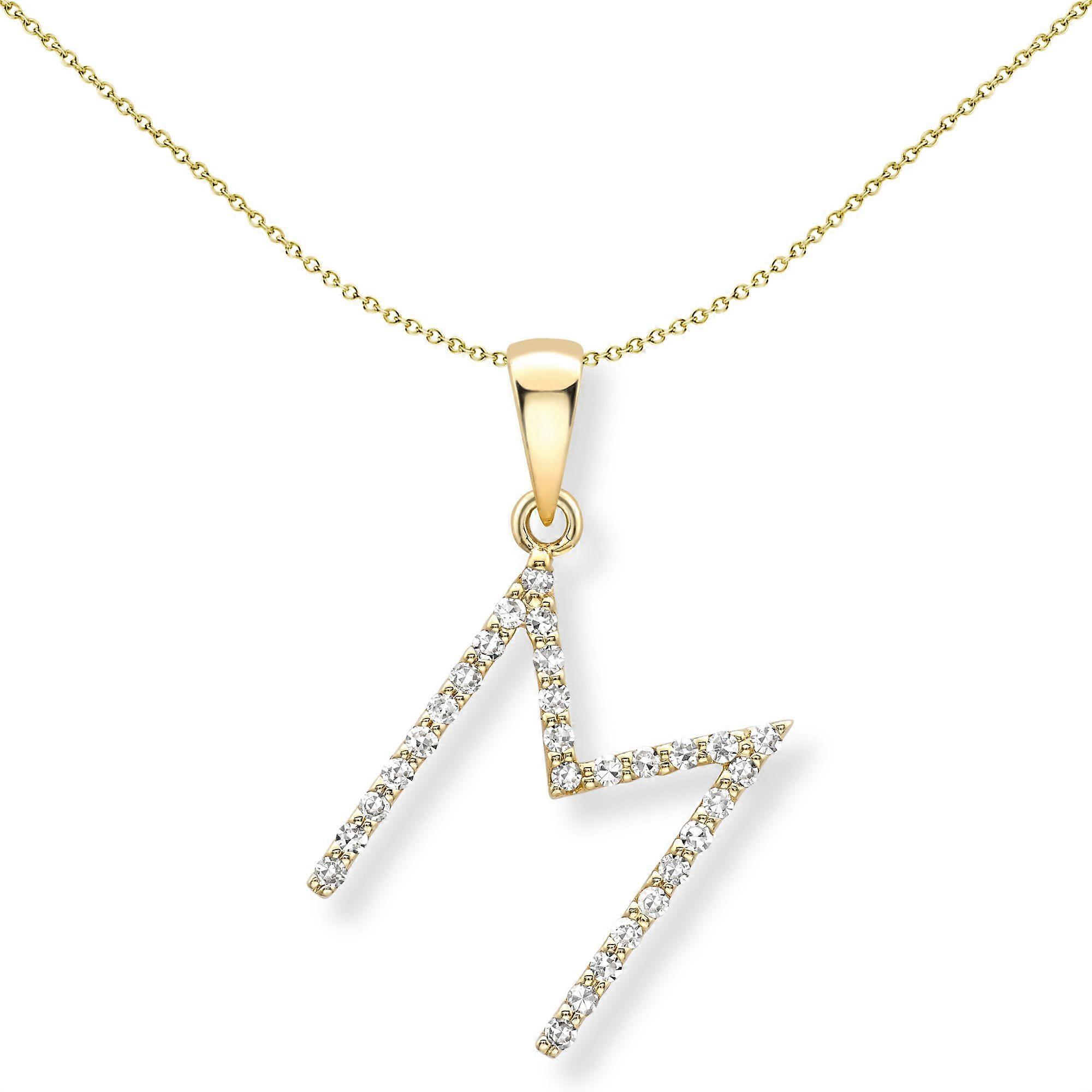 Jewelco London 9ct Yellow Gold Diamond Initial Charm Pendant Letter M 9mm x 14mm