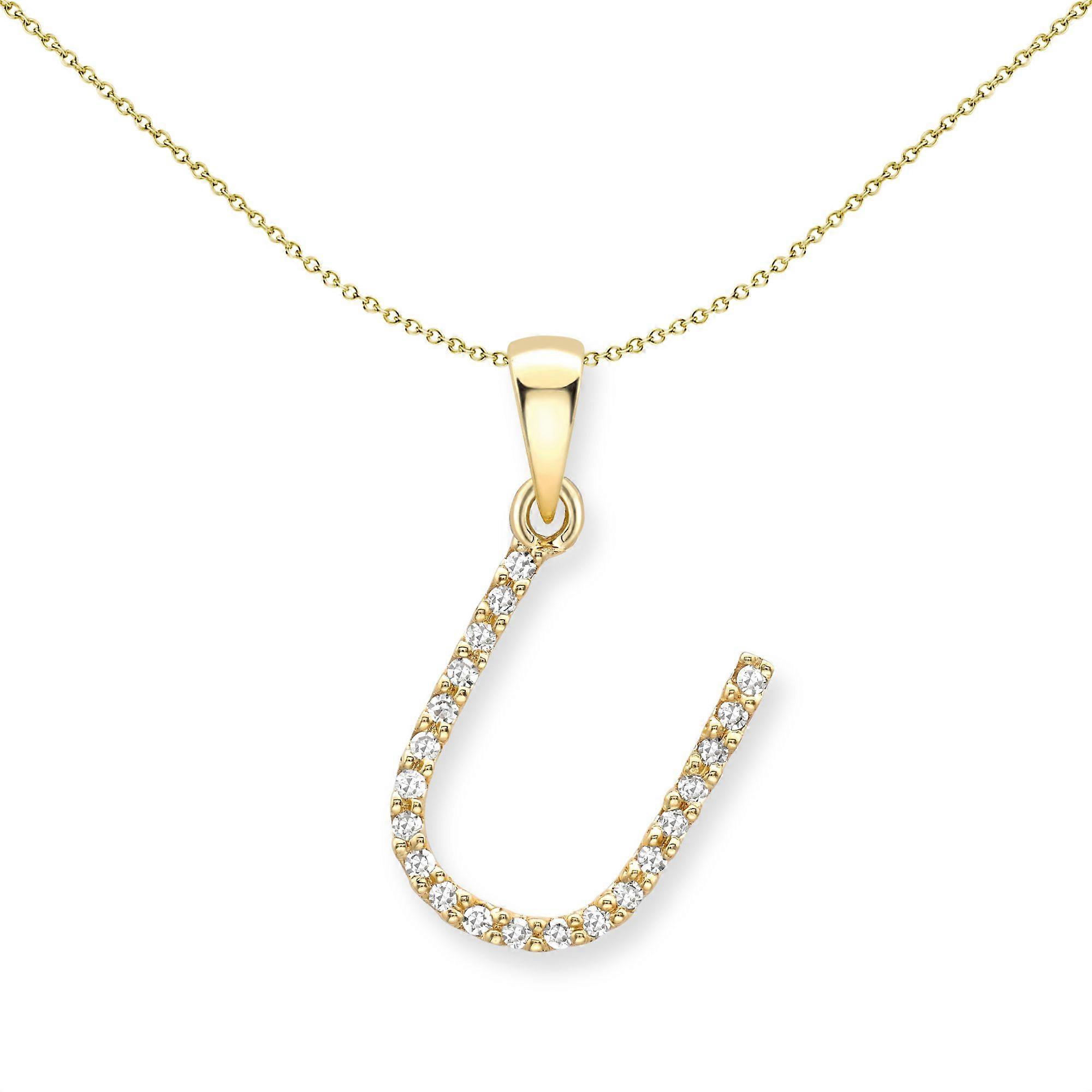 Jewelco London 9ct Yellow Gold Diamond Initial Charm Pendant Letter U 8mm x 15mm