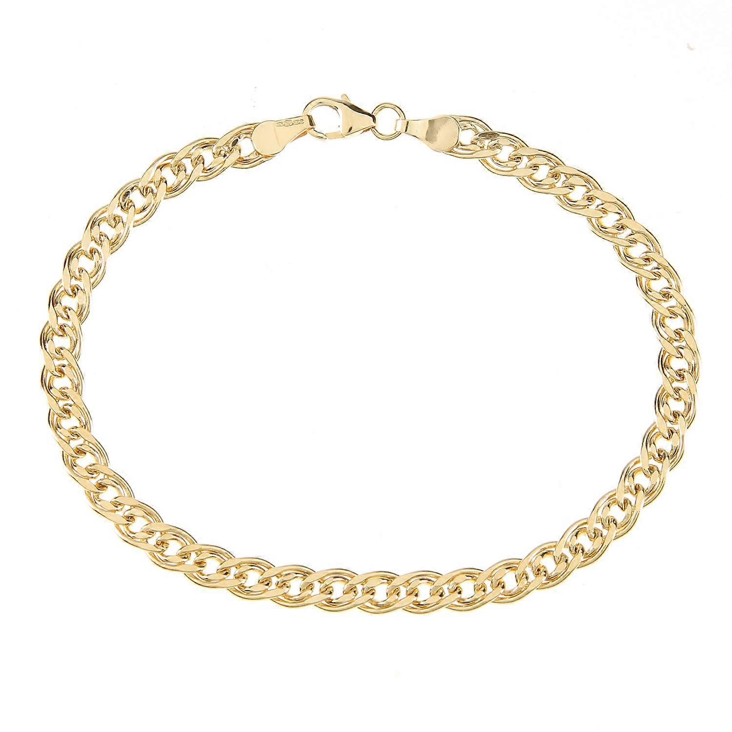 Jewelco London 9ct Yellow Gold Double Curb Chain Bracelet 5mm 7.5 inch 19cm