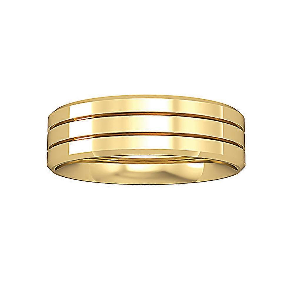 Jewelco London 9ct Yellow Gold Flat-Court Double Groove Bevelled Band Wedding Ring 6mm