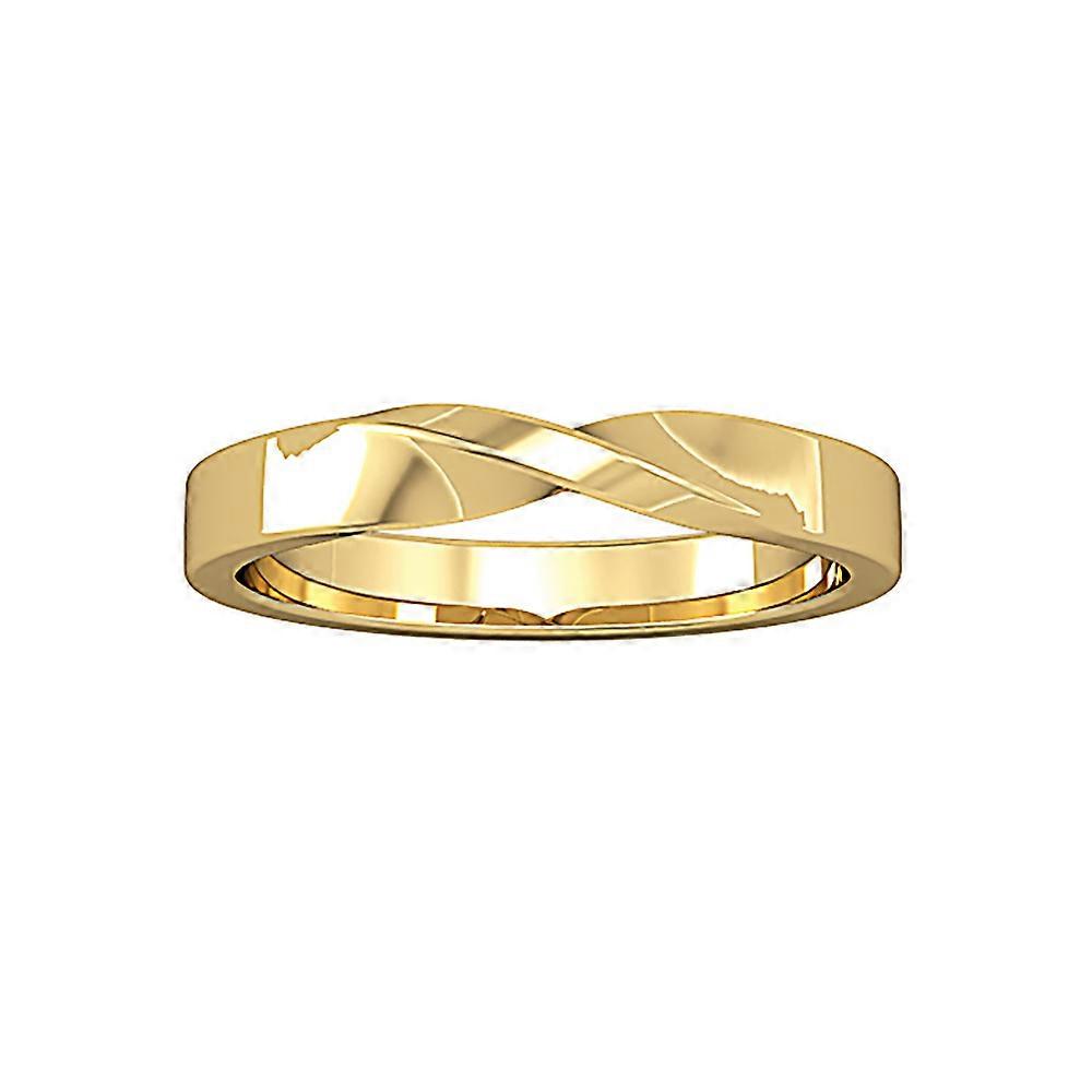 Jewelco London 9ct Yellow Gold Flat Court Ribbon Band Wedding Ring 3mm