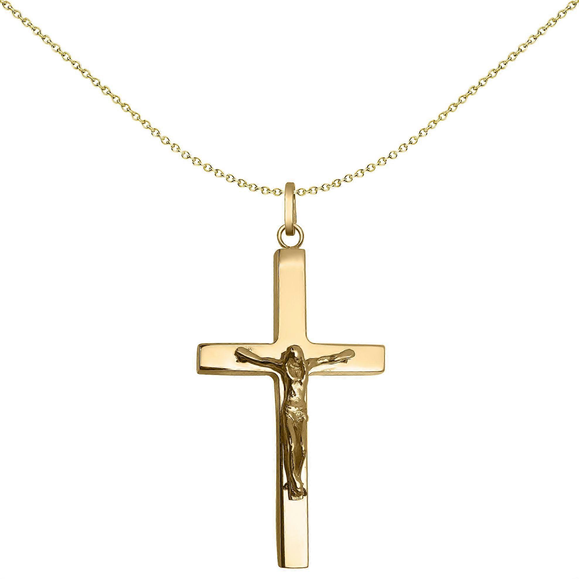 Jewelco London 9ct Yellow Gold Lightweight Square Tube Jesus Crucifix Cross Pendant