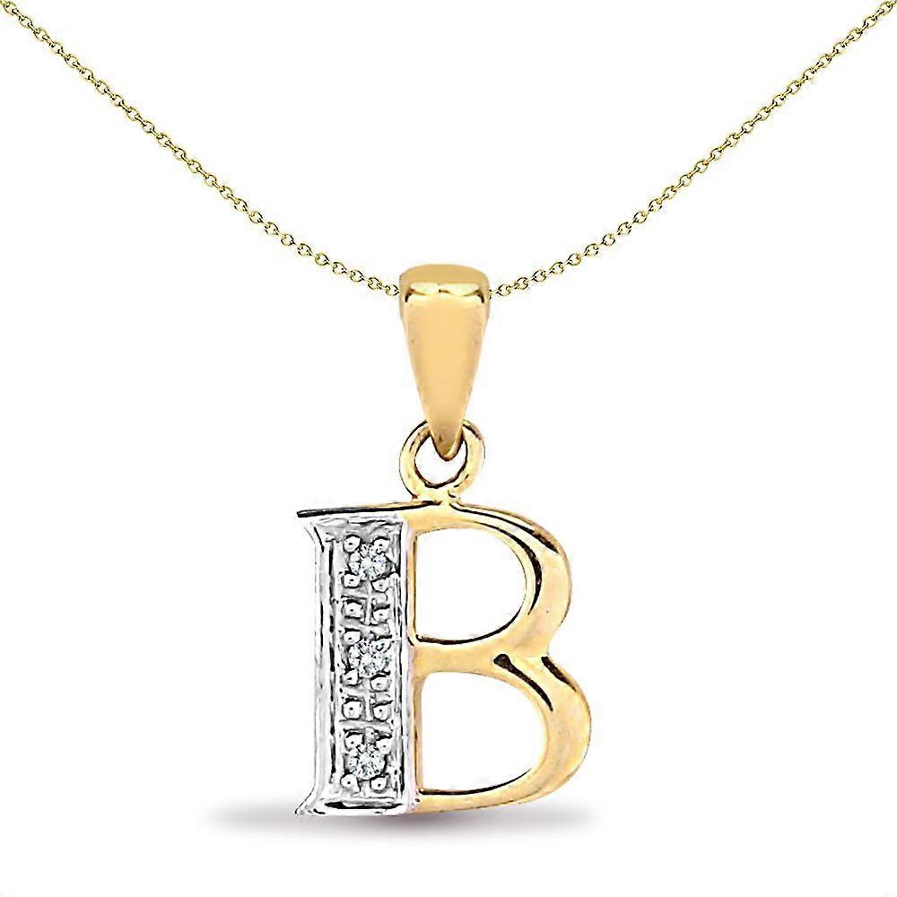 Jewelco London 9ct Yellow Gold Pave Set Round H I2 0.02ct Diamond Identity Dainty Initial ID Charm Pendant Letter B