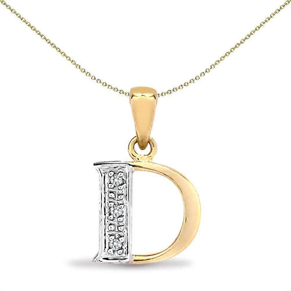 Jewelco London 9ct Yellow Gold Pave Set Round H I2 0.02ct Diamond Identity Dainty Initial ID Charm Pendant Letter D