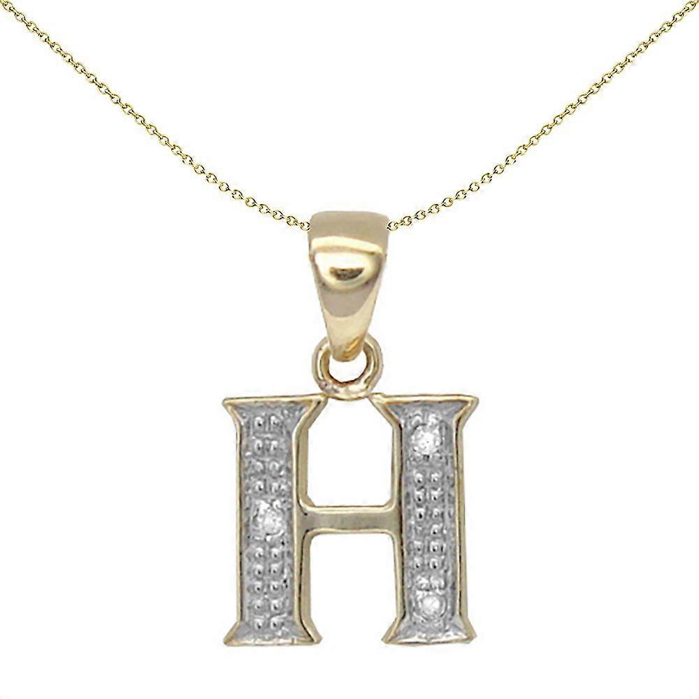 Jewelco London 9ct Yellow Gold Pave Set Round H I2 0.02ct Diamond Identity Dainty Initial ID Charm Pendant Letter H