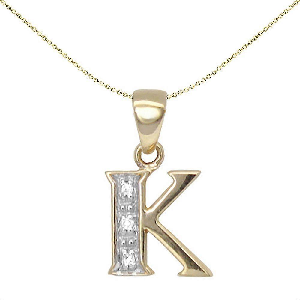 Jewelco London 9ct Yellow Gold Pave Set Round H I2 0.02ct Diamond Identity Dainty Initial ID Charm Pendant Letter K