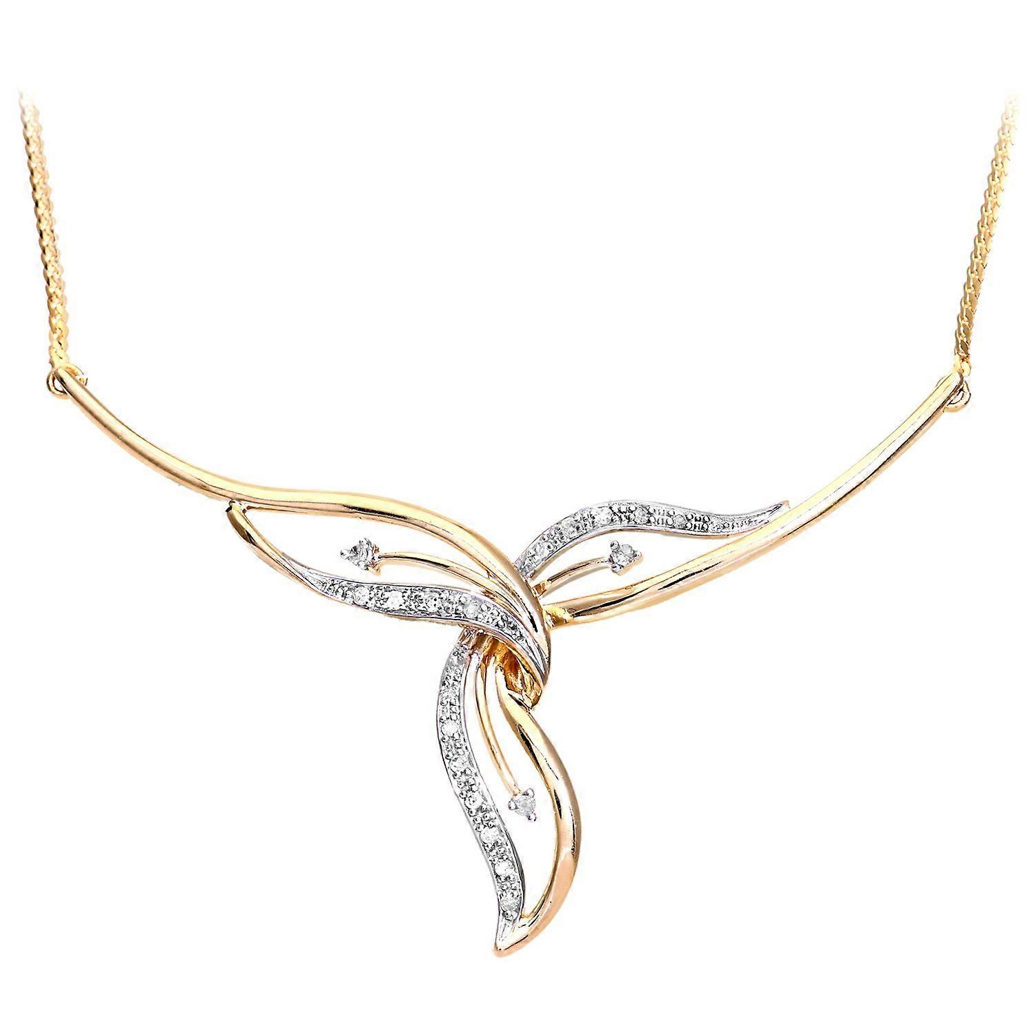 Jewelco London 9ct Yellow Gold Round 10pts Diamond Cravat Scarf Tie Lavalier Necklace 18 inch 46cm