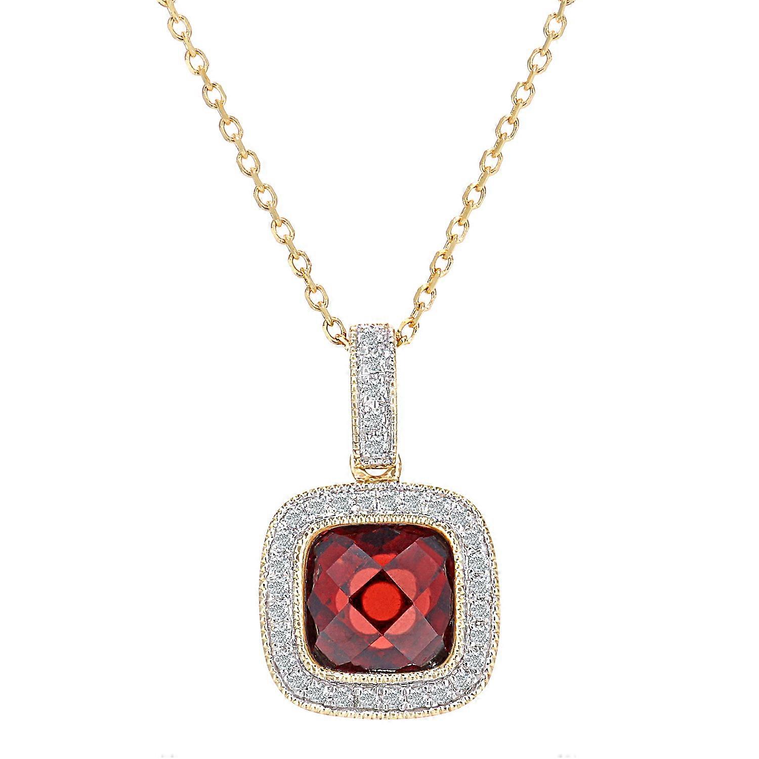 Jewelco London 9ct Yellow Gold Round 10pts Diamond Cushion 1.9ct Garnet Cocktail Pendant Necklace 16 inch 42cm