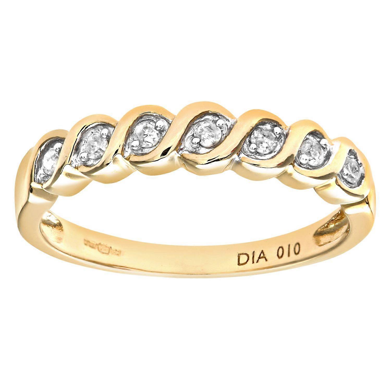 Jewelco London 9ct Yellow Gold Round 10pts Diamond Wavy Ribbon Twist 7 Stone Eternity Ring 4mm