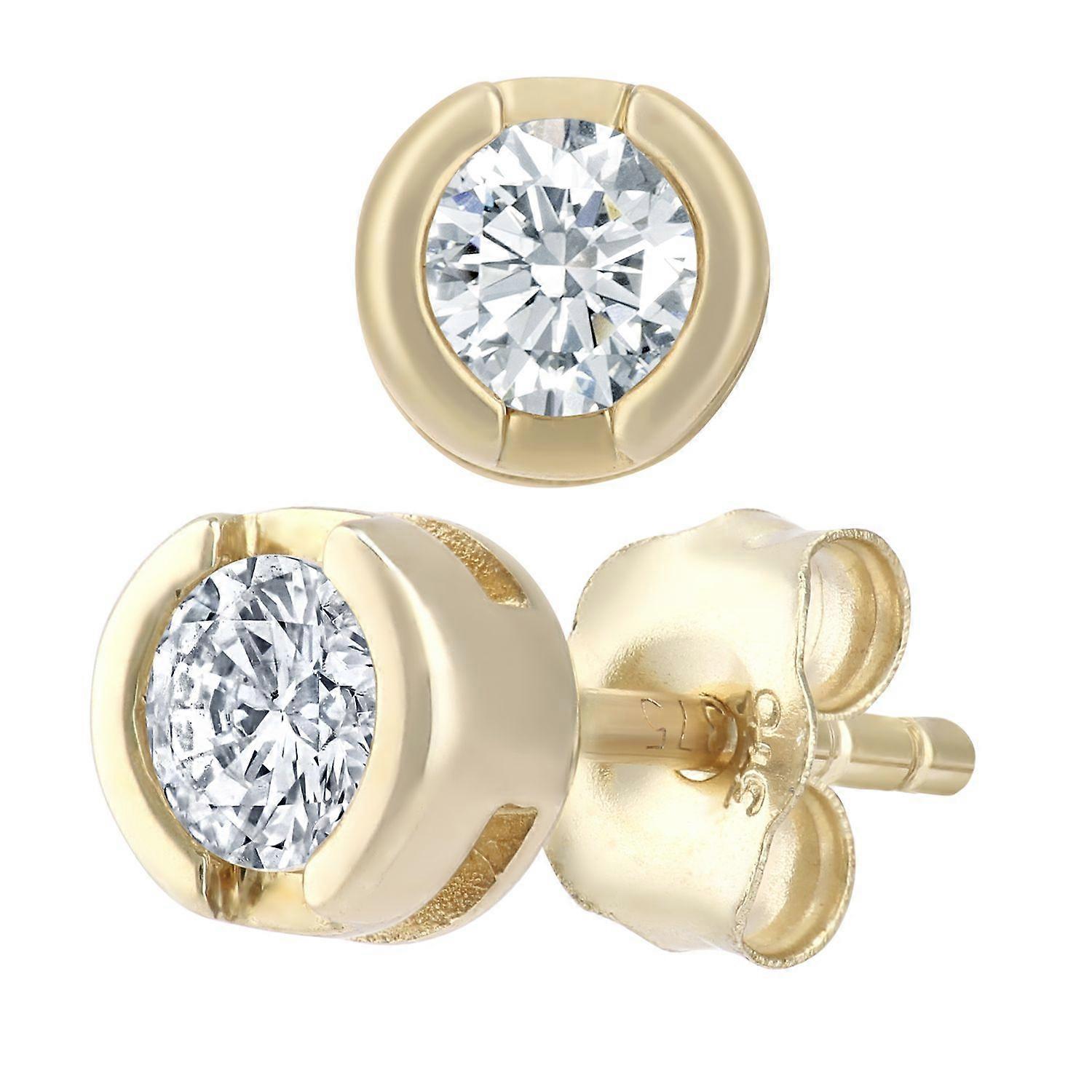 Jewelco London 9ct Yellow Gold Round 1/3ct Diamond Solitaire Stud Earrings