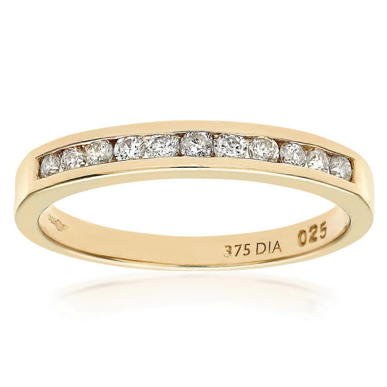 Jewelco London 9ct Yellow Gold Round 1/4ct Diamond 11 Stone Channel Set Eternity Ring 2mm