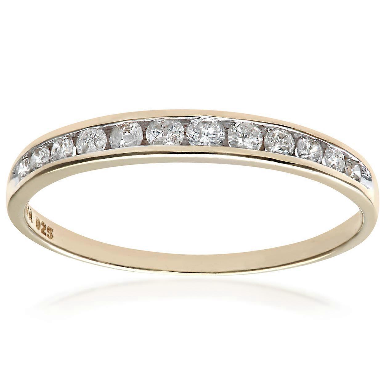 Jewelco London 9ct Yellow Gold Round 1/4ct Diamond Dozen Stone Channel Set Half Eternity Ring 1.5mm