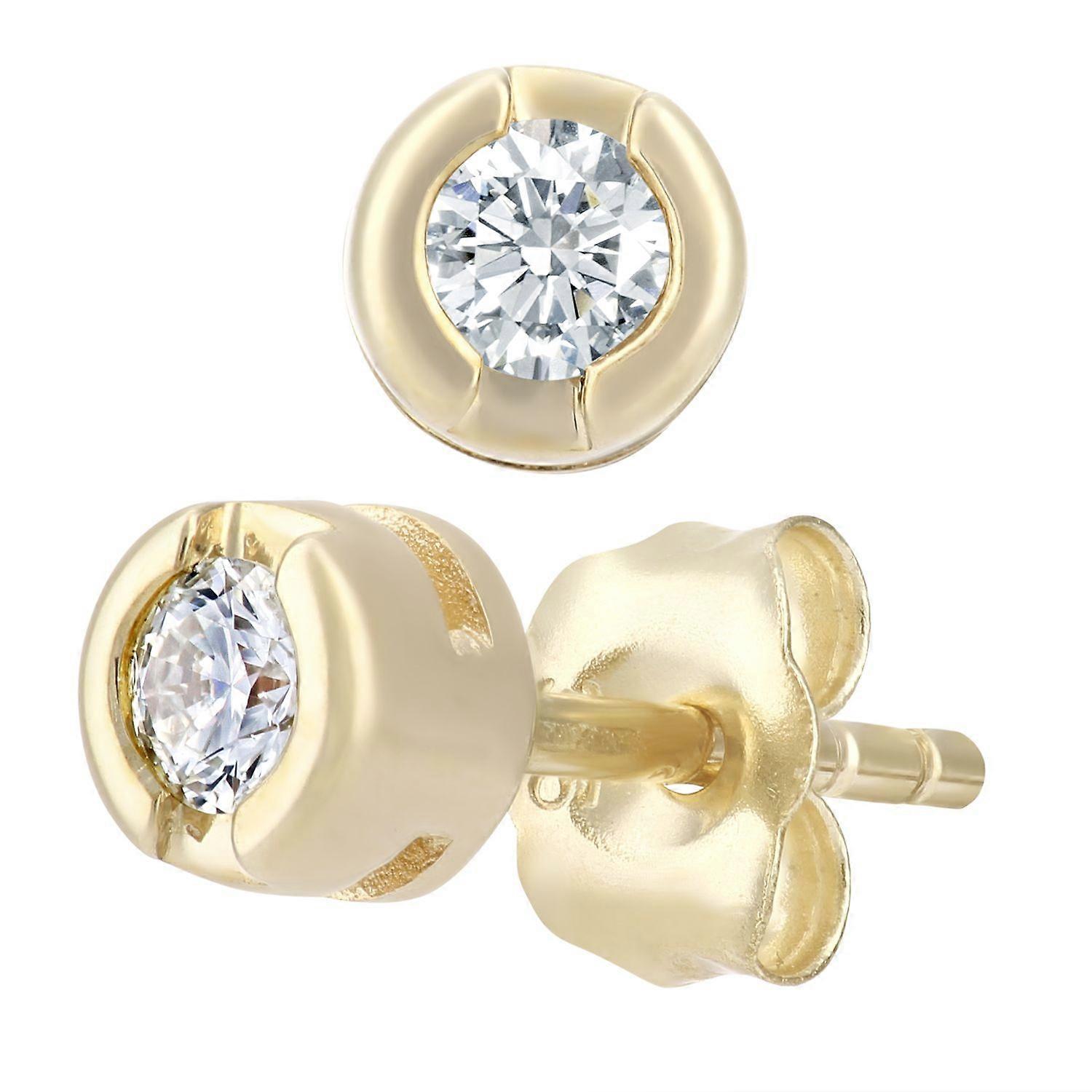 Jewelco London 9ct Yellow Gold Round 15pts Diamond Solitaire Stud Earrings