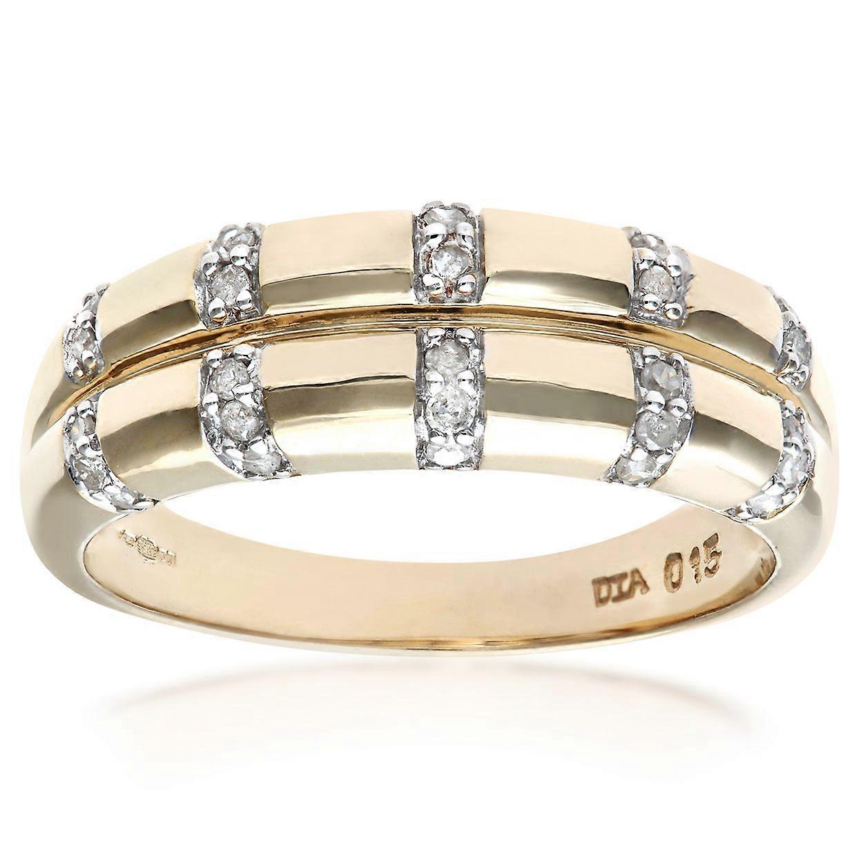 Jewelco London 9ct Yellow Gold Round 15pts Diamond Split Band Column Wedding Ring 3mm