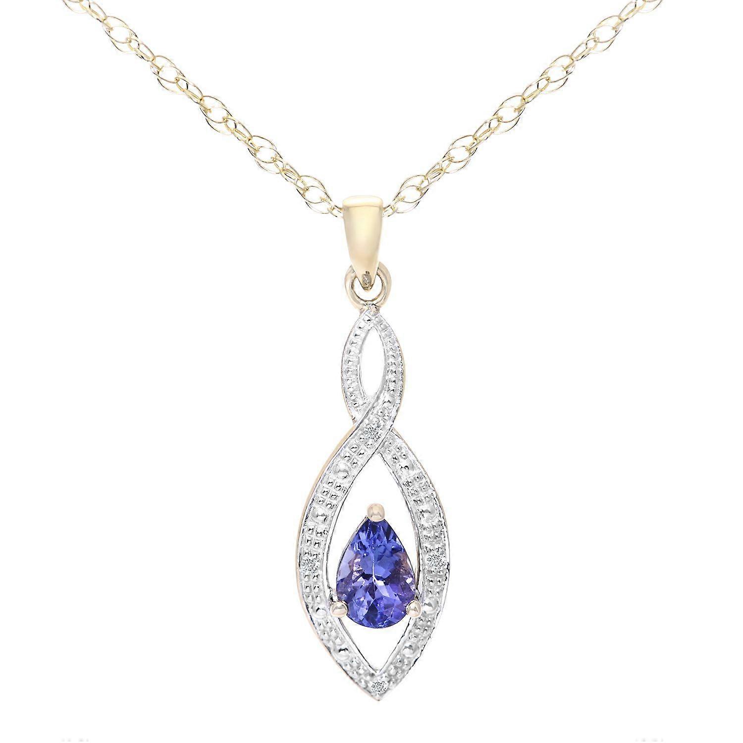 Jewelco London 9ct Yellow Gold Round 1pts Diamond Pear 1/2ct Tanzanite Teardrop Pendant Necklace 18 inch 46cm