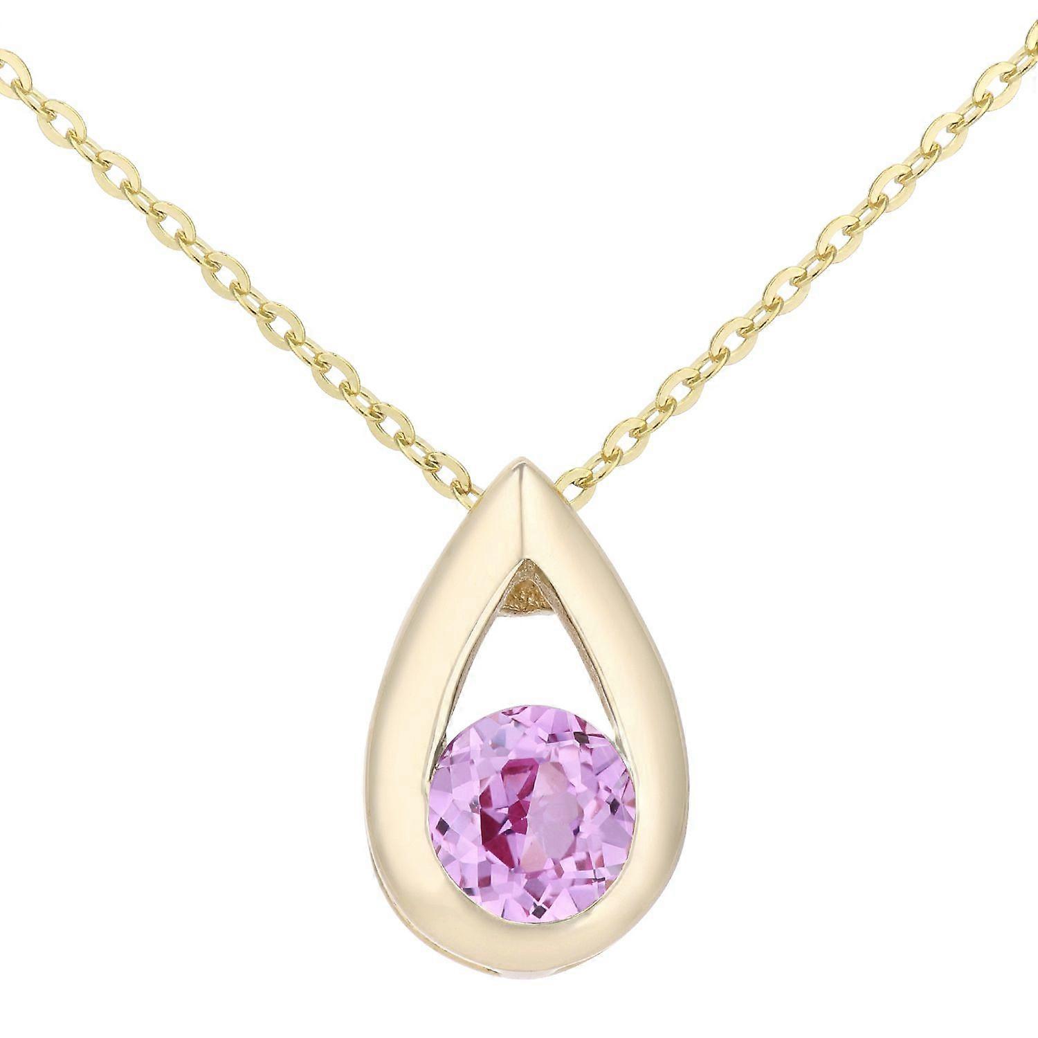 Jewelco London 9ct Yellow Gold Round 20pts Created Sapphire Teardrop Pendant Necklace 18 inch 46cm