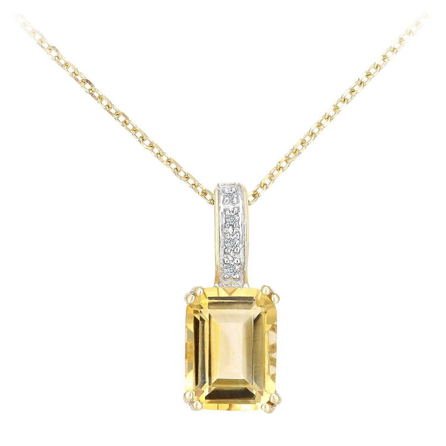 Jewelco London 9ct Yellow Gold Round 2pts Diamond Octagon 1.5ct Citrine Inverted Popsicle Pendant Necklace 16 inch 42cm