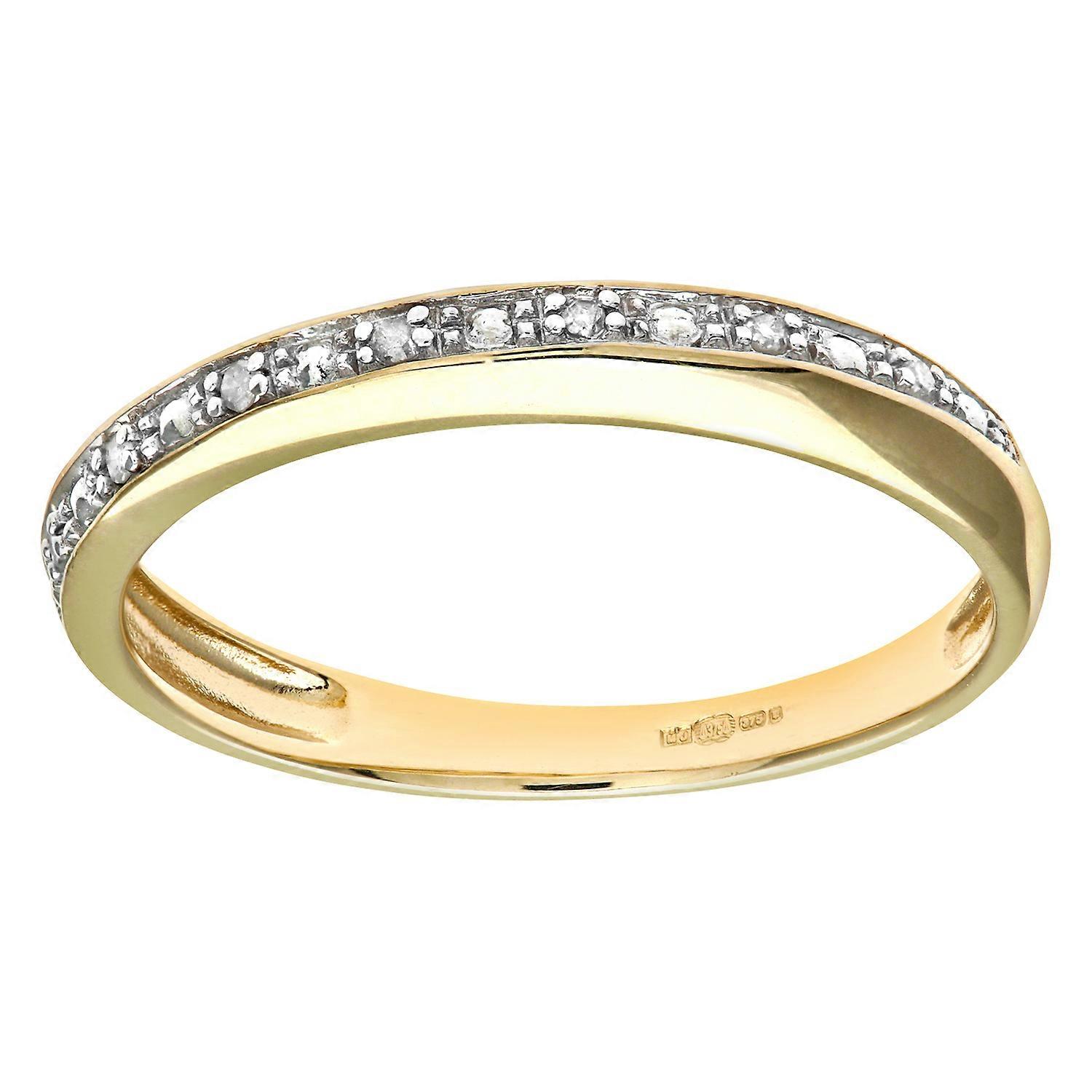 Jewelco London 9ct Yellow Gold Round 2pts Diamond Pave Edge Half Eternity Ring 3mm