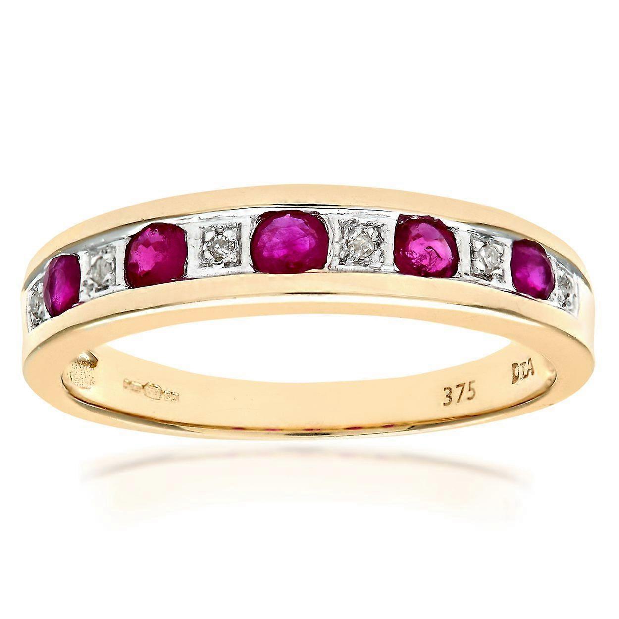 Jewelco London 9ct Yellow Gold Round 2pts Diamond Round 0.38ct Ruby Alternating Channel Eternity Ring 2mm