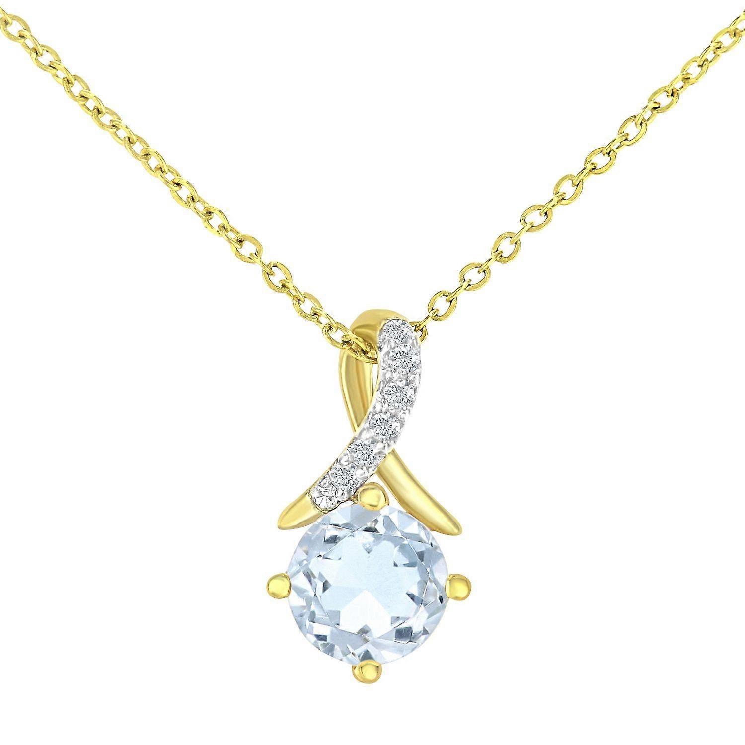 Jewelco London 9ct Yellow Gold Round 2pts Diamond Round 0.62ct Blue Topaz Kiss Crossover Pendant Necklace 18 inch 46cm