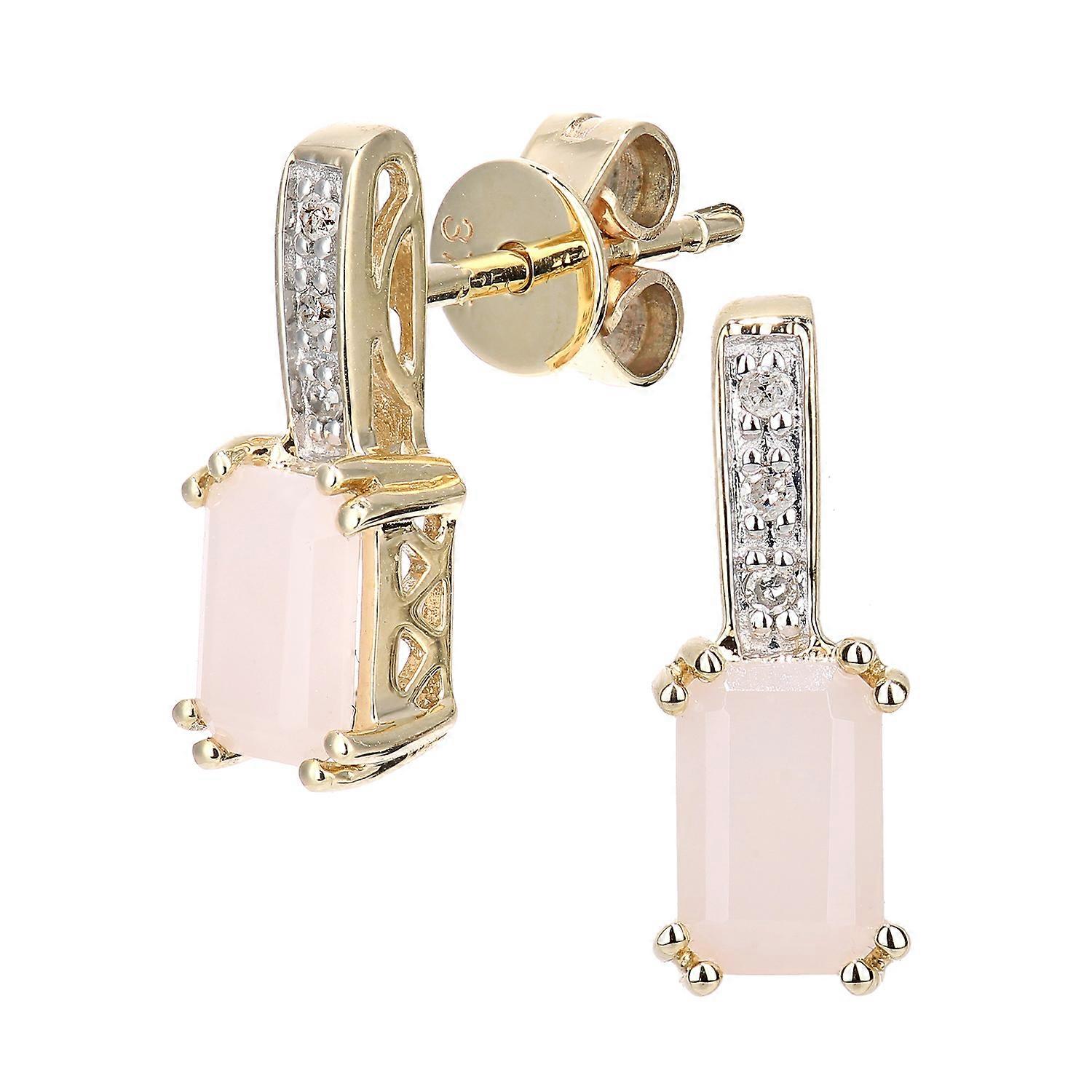 Jewelco London 9ct Yellow Gold Round 3pts Diamond Octagon 0.72ct Opal Inverted Popsicle Drop Earrings