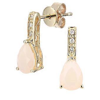 Jewelco London 9ct Yellow Gold Round 3pts Diamond Pear 1.15ct Opal Teardrop Drop Earrings