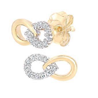 Jewelco London 9ct Yellow Gold Round 5pts Diamond Infinity Stud Earrings