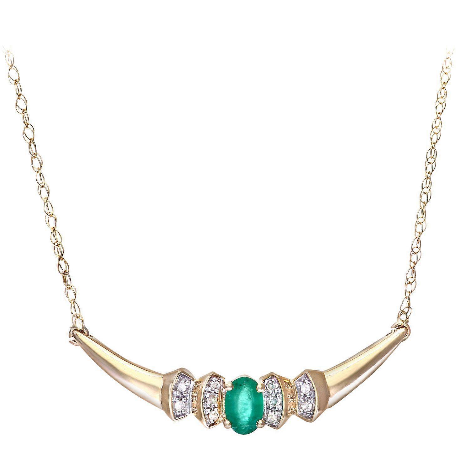 Jewelco London 9ct Yellow Gold Round 5pts Diamond Oval 0.47ct Emerald Viking Horns Lavalier Necklace 18 inch 46cm