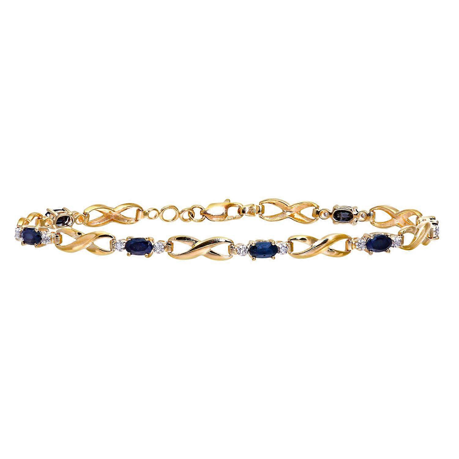 Jewelco London 9ct Yellow Gold Round 5pts Diamond Oval 2.29ct Sapphire Kiss Charm Bracelet