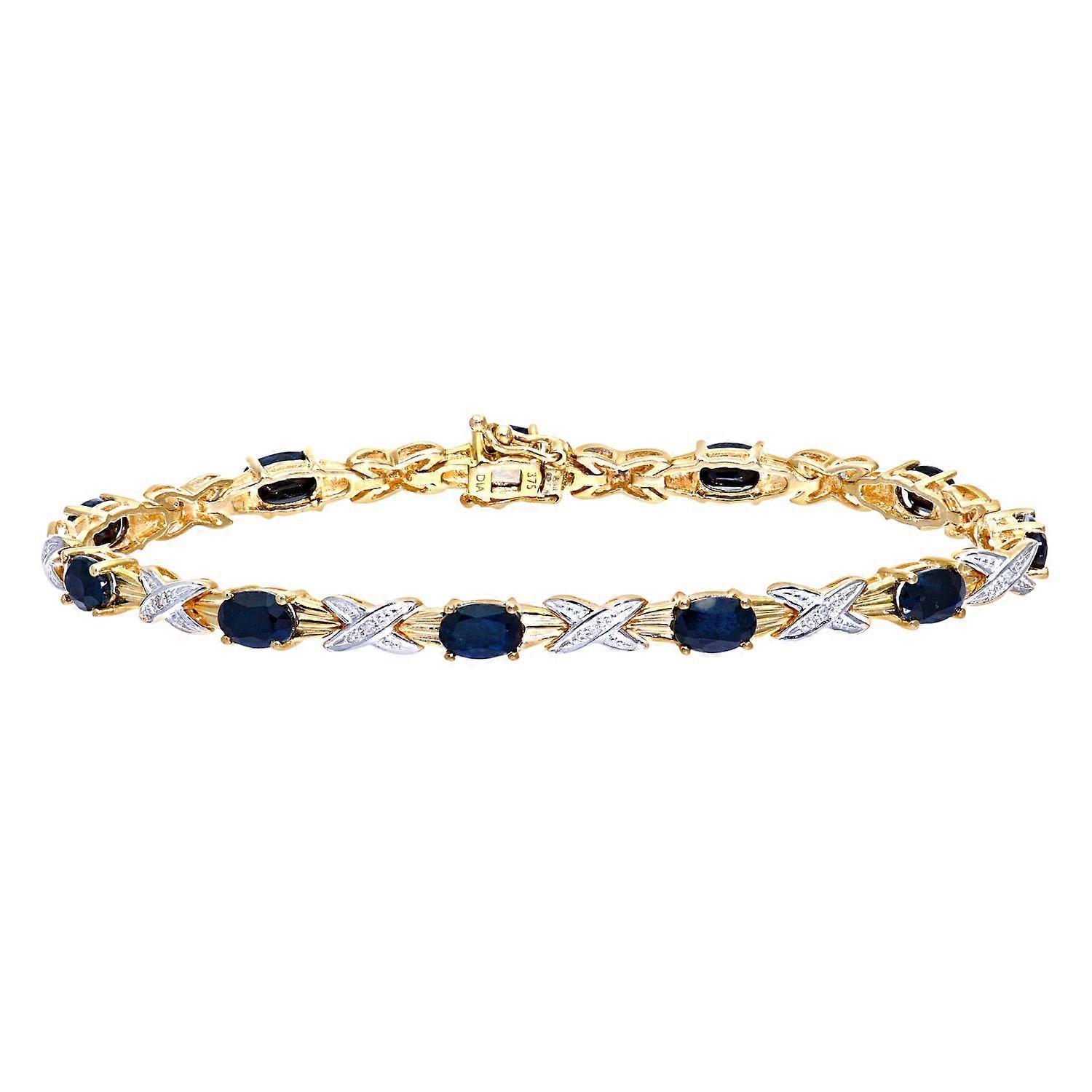 Jewelco London 9ct Yellow Gold Round 5pts Diamond Oval 7.6ct Sapphire Kiss Charm Bracelet