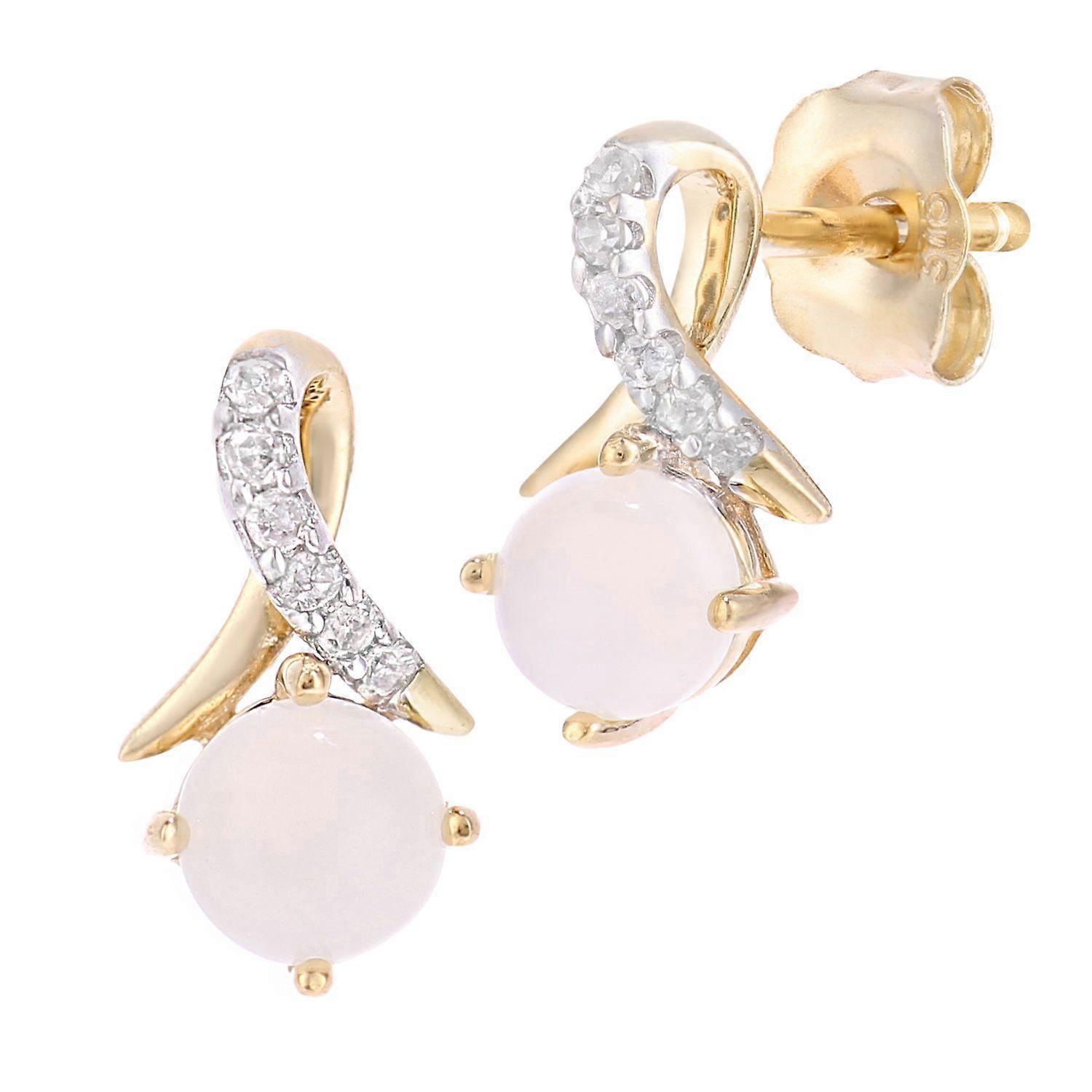 Jewelco London 9ct Yellow Gold Round 5pts Diamond Round 4pts Opal Kiss Crossover Stud Earrings