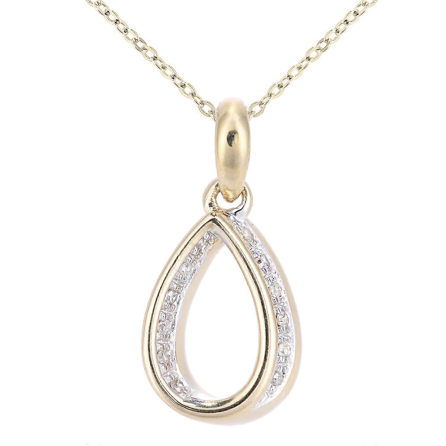 Jewelco London 9ct Yellow Gold Round 5pts Diamond Teardrop Pendant Necklace 18 inch 46cm