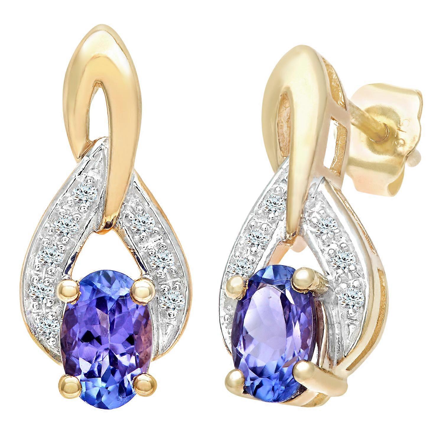 Jewelco London 9ct Yellow Gold Round 7pts Diamond Oval 1ct Tanzanite Teardrop Drop Earrings