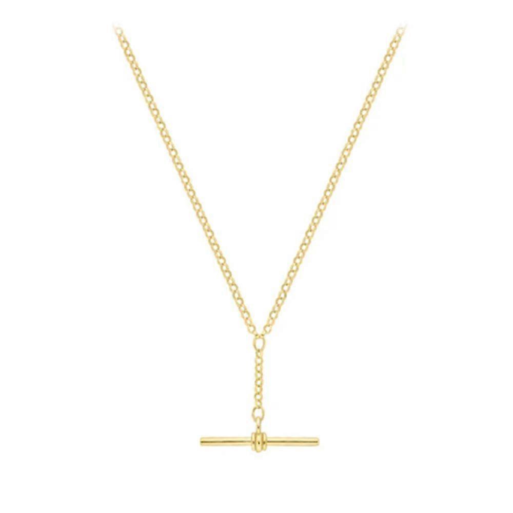 Jewelco London 9ct Yellow Gold Tight-link Micro Belcher T-Bar Necklace 18" 45cm