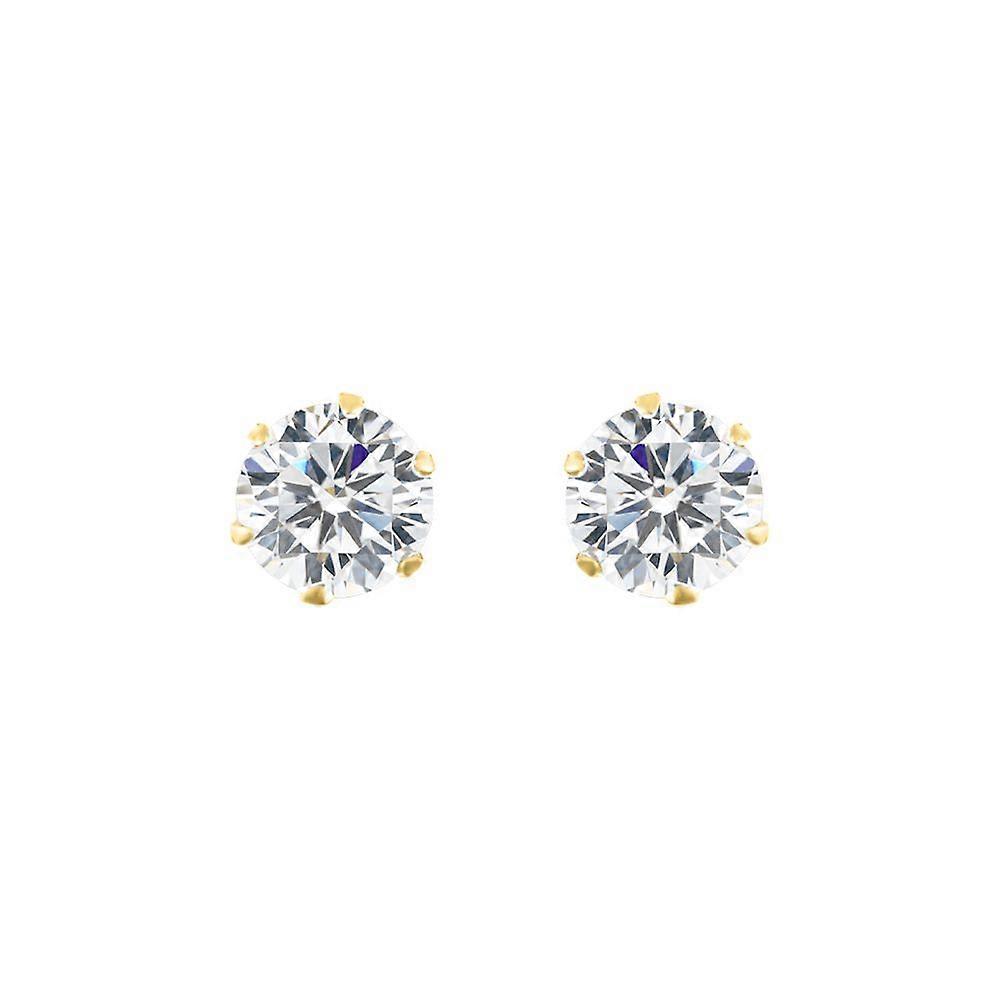 Jewelco London 9ct Yellow Gold White Round Brilliant Cubic Zirconia 6 Claw Solitaire Stud Earrings, 5mm 1 Carat