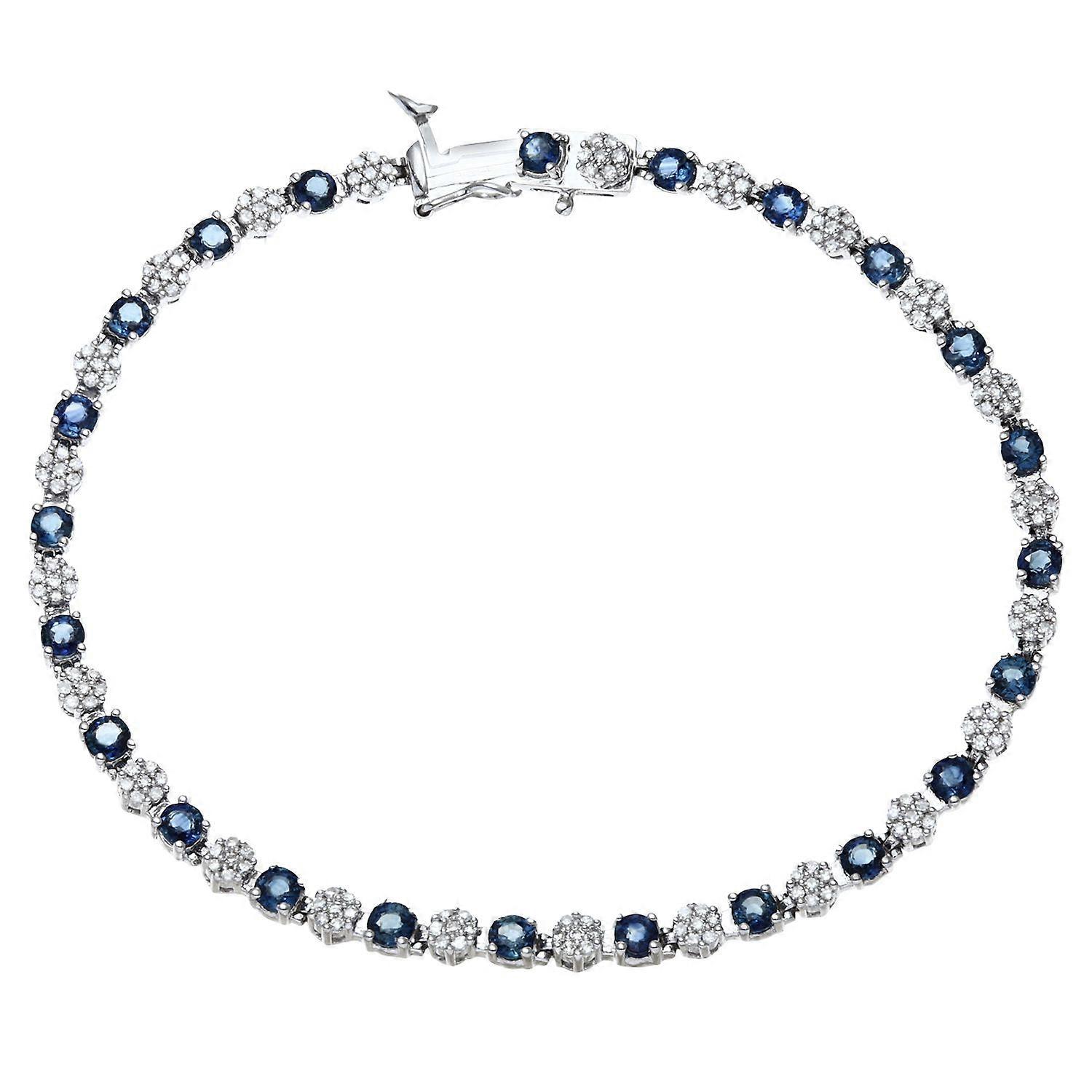 Jewelco London 9ct White Gold Round 0.63ct Diamond Round 3.91ct Blue Sapphire Alternating Cluster Tennis Bracelet