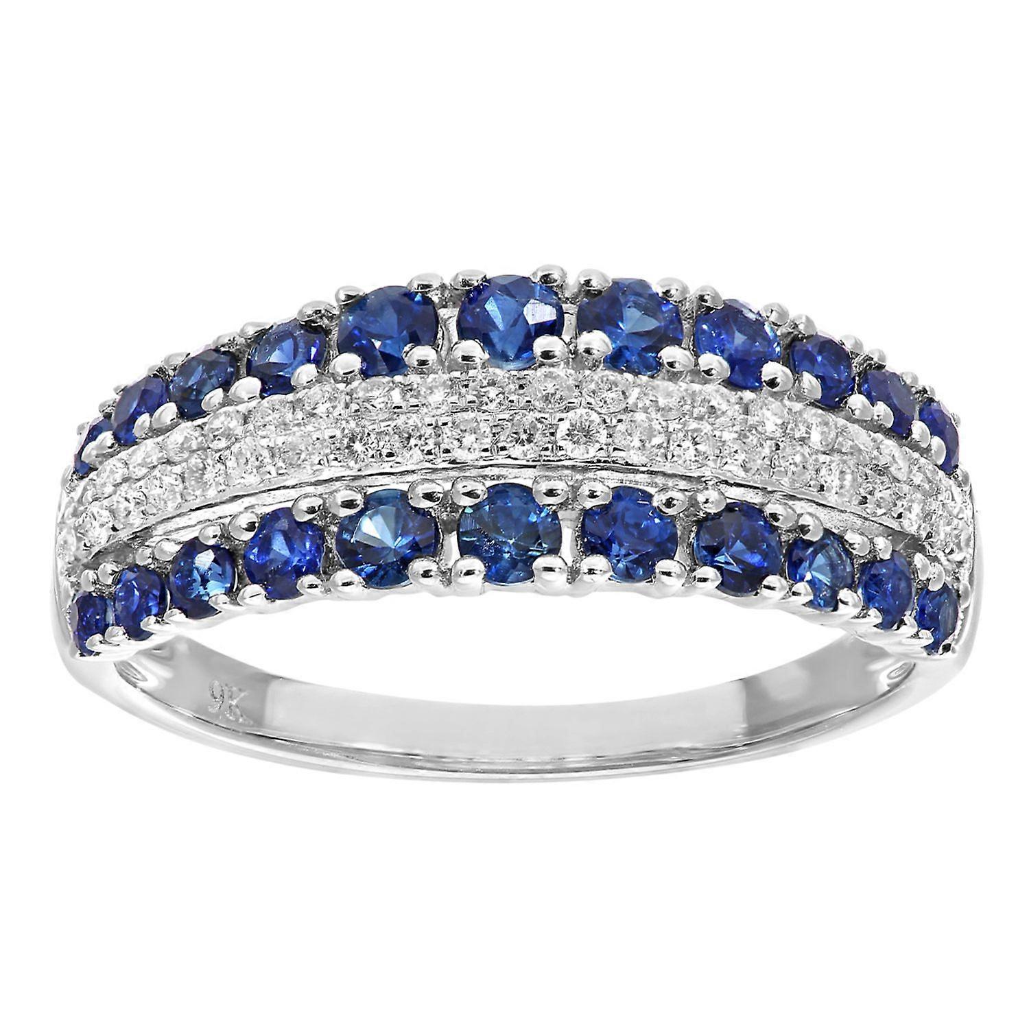 Jewelco London 9ct White Gold Round 19pts Diamond Round 0.9ct Sapphire Split Sea Eternity Ring 2mm