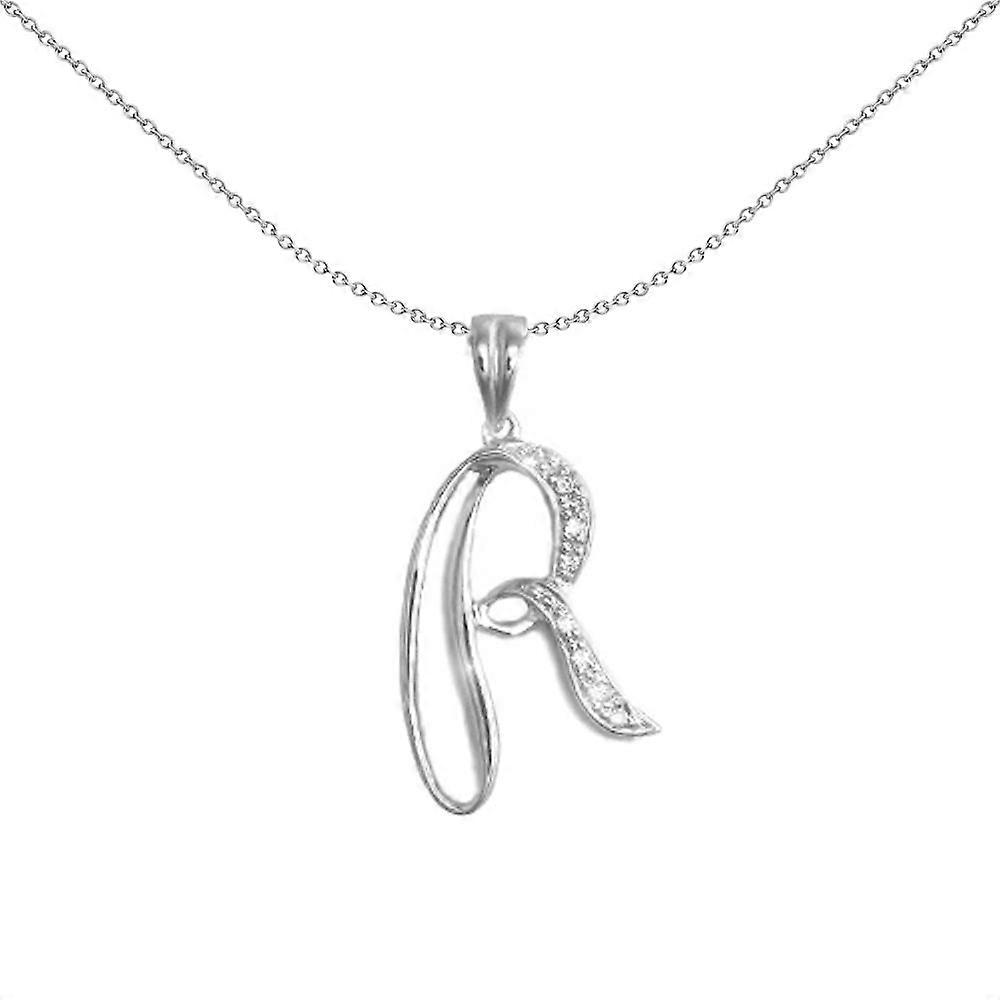 Jewelco London 9ct White Gold Pave Set Round G SI 0.06ct Diamond Identity Script Initial ID Charm Pendant Letter R