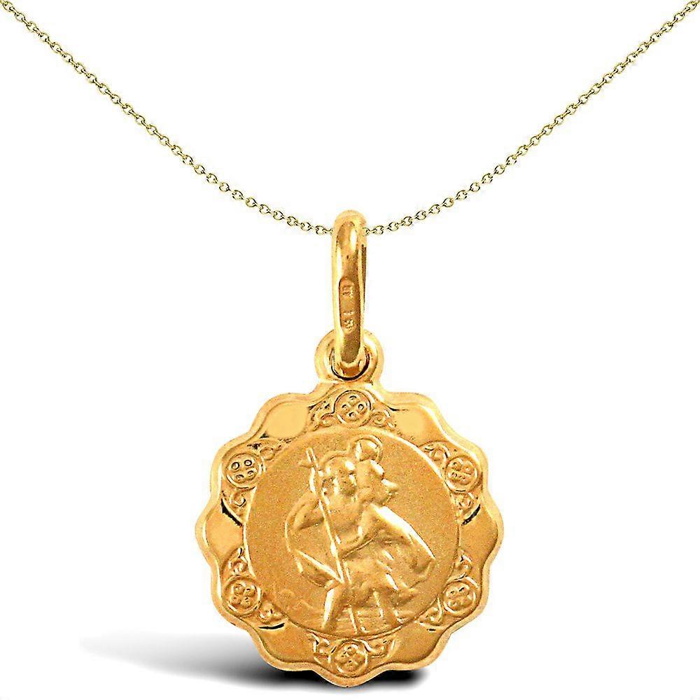 Jewelco London 9ct Yellow Gold Scallop Edged St Christopher Medallion Pendant
